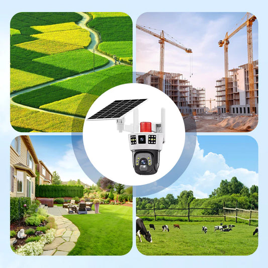 Cámara de Seguridad Solar para Exteriores | Doble Lente | Full HD 1080p | 360° | Visión Nocturna