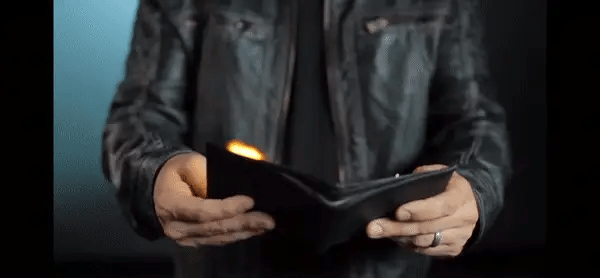 La Fire Wallet funciona también como una billetera tradicional. Tiene espacio para tarjetas y billetes, así que puedes llevarla en el día a día, combinando lo funcional con lo espectacular.