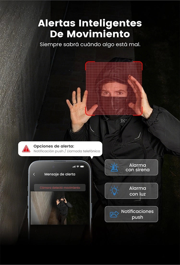 Notificaciones instantáneas al celular cuando detecta movimiento |