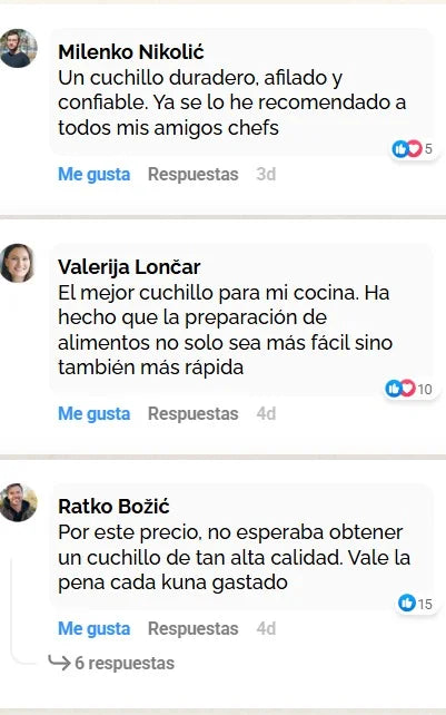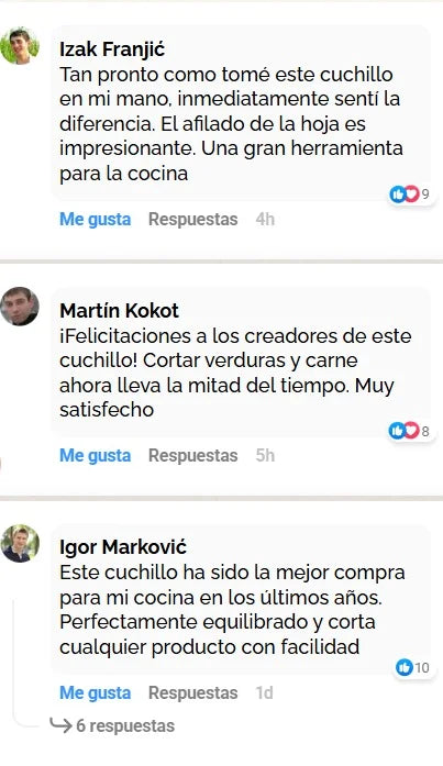 El 88% Notaron que el filo se mantiene afilado incluso después de varias semanas de uso