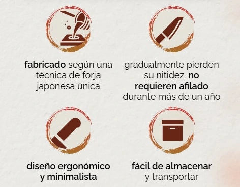 Están fabricados con acero inoxidable japonés de alta resistencia, reconocido por su durabilidad, precisión y resistencia a la corrosión.