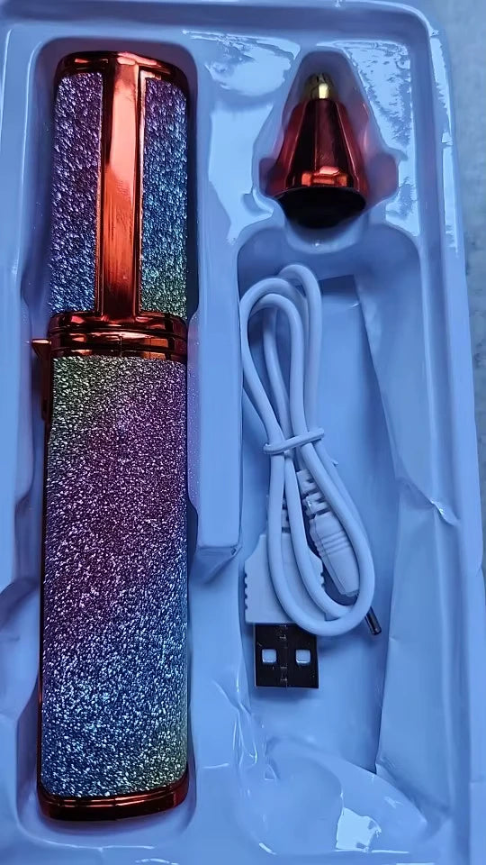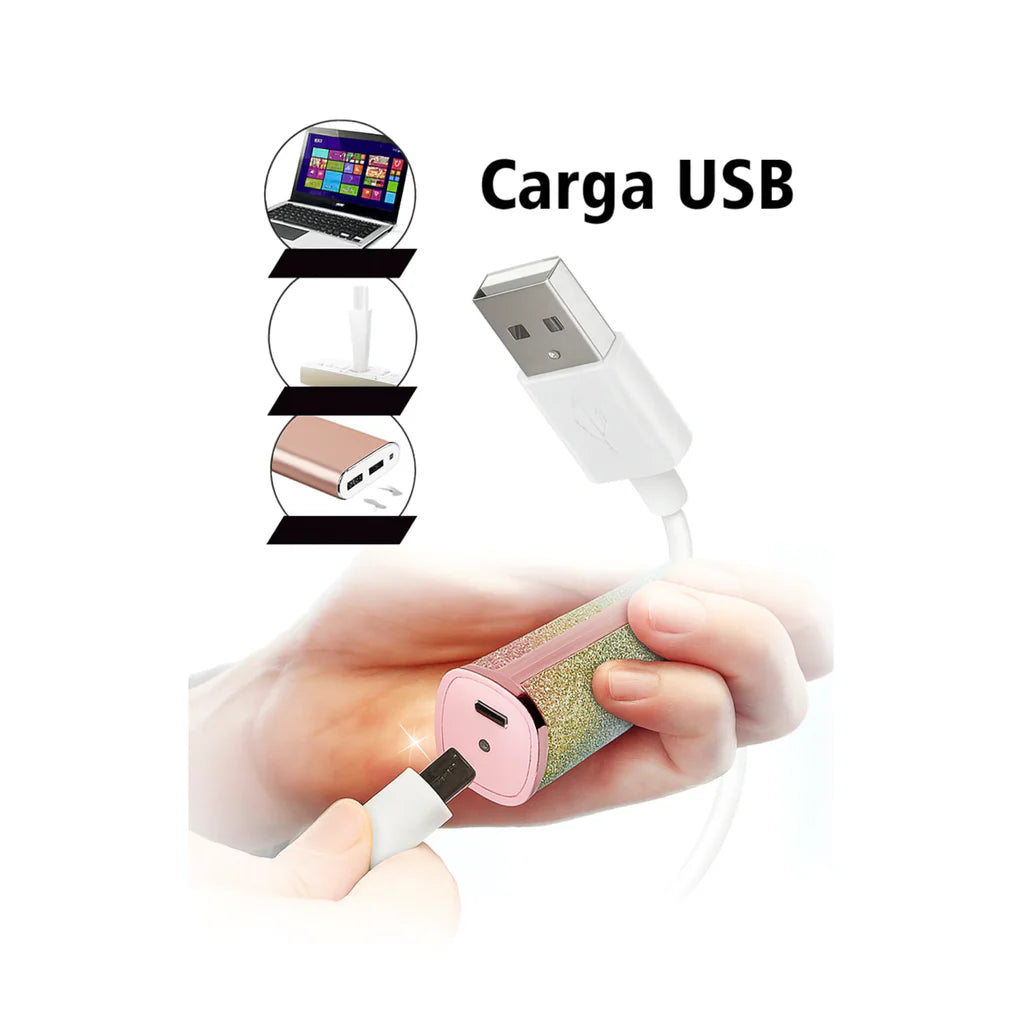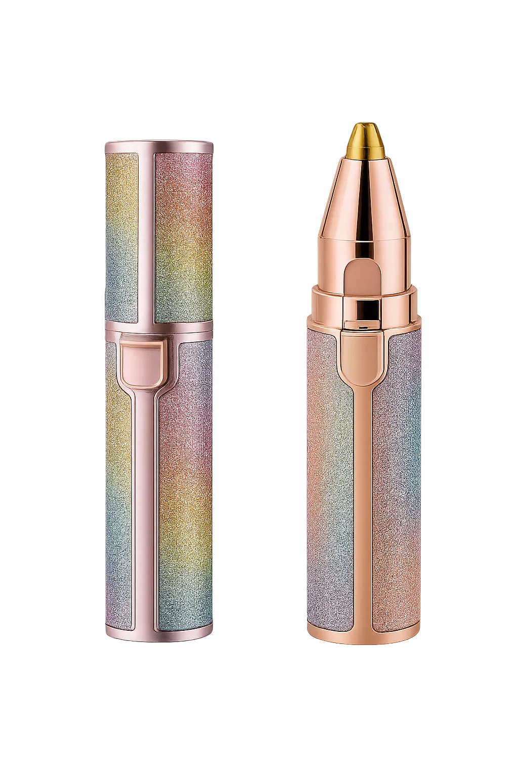 Diseño compacto tipo labial con purpurina (discreto y elegante) |