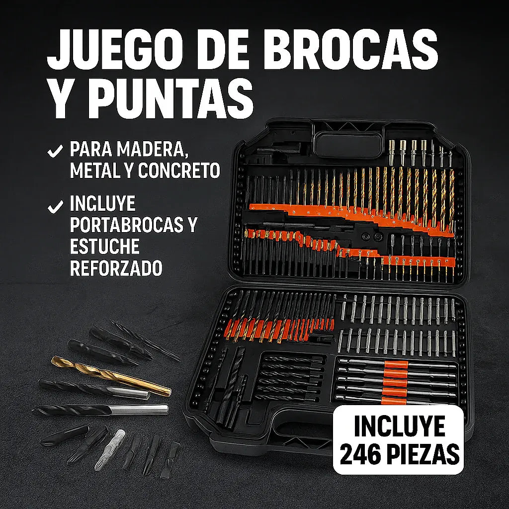 No, el maletín contiene exclusivamente brocas, puntas y accesorios. Es compatible con la mayoría de taladros eléctricos y manuales del mercado.