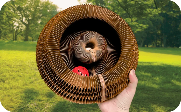 Su forma transformable, la interacción con pelota y su resistencia lo convierten en un 3 en 1: Rascador, juguete y centro de actividad.