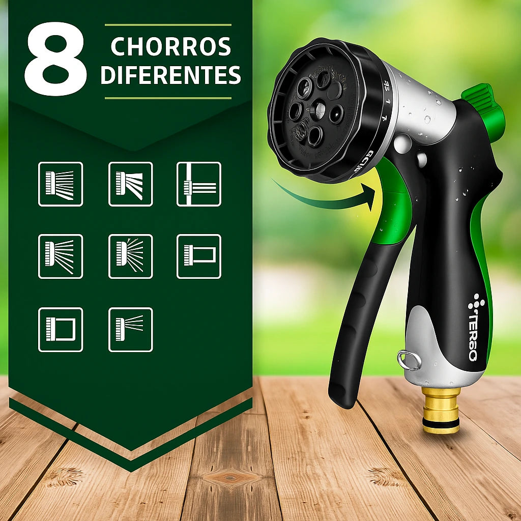 Sirve para ambas cosas: riega jardines con chorro suave o lava el carro con chorro fuerte.