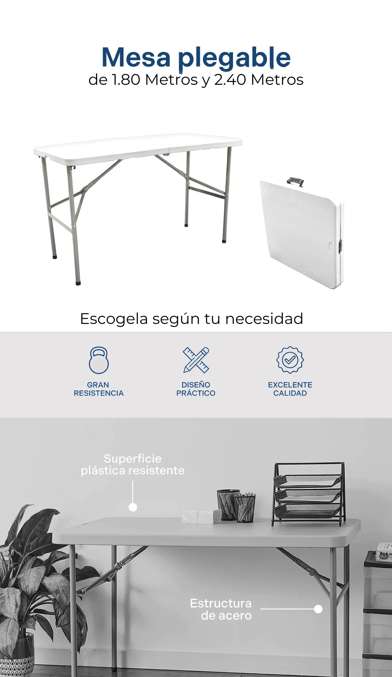 1 Mesa plegable completa(tablero + patas metálicas).
