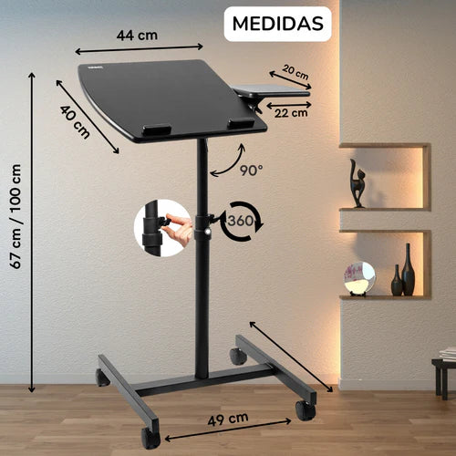 - Altura regulable (55-90 cm) → Ajusta la mesa a la posición ideal para ti.