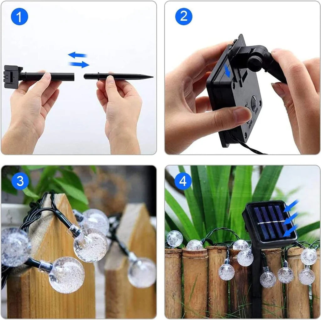 - Cada pack tiene Panel solar y 30 luces led y 7.5 metros de largo
