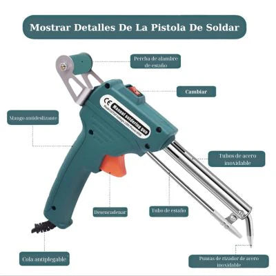 - Sujeta firme el mango; presiona el gatillo para que el estaño fluya.