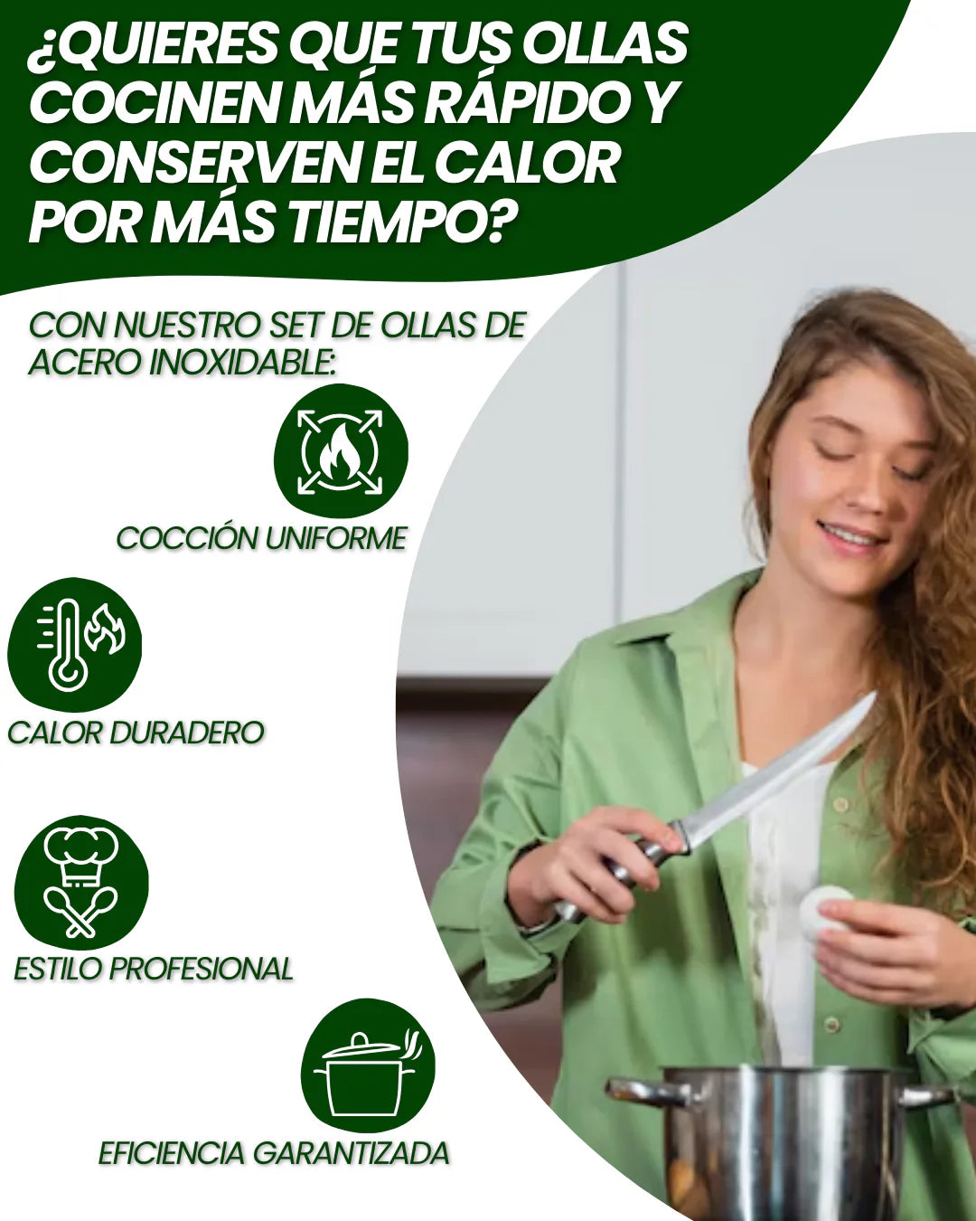 El Set Premium de Ollas incluye diferentes tamaños de ollas con tapa (12 Piezas), ideales para todo tipo de recetas, desde sopas hasta guisos.